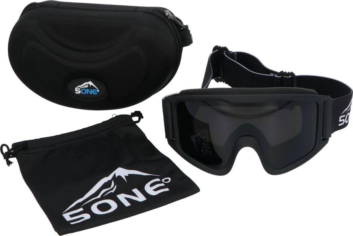 De Alpine 1 is een ski- en snowboard bril voor de wintersporter die goed zicht en comfort belangrijk vindt. Het model is iets kleiner qua lensgrootte en daardoor geliefd bij dames. Deze bril heeft een medium-fit pasvorm is daarmee passend voor de meeste gezichtsvormen. Met de verstelbare band kun je hem nog eens afstellen op je helm grootte. De lens heeft een grijze basiskleur lens onder de zwarte coating, welke een fijn rustgevend zicht geeft. Het model ziet er iets kleiner uit dan veel moderne grote glazen. Geschikt voor volwassenen en tieners. 5one® Alpine 4 Black goggles – for real snow fun!