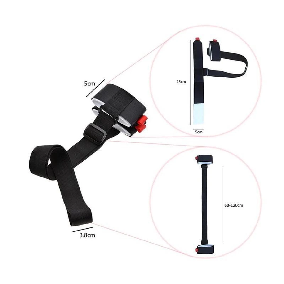 Met je handen vrij naar de piste lopen? Geen gestuntel meer met vallende ski’s en skistokken? Met deze ski-draagband hang je je ski’s eenvoudig over je schouder of op je rug. Aan de uiteindes van deze draagband zitten twee grip-lussen van klittenband met foam. De foam band zorgt ervoor dat uw ski’s niet beschadigen en hebben extra grip om de ski’s en eventueel skistokken goed bij elkaar blijven. Het uiteinde is gemaakt van klittenband zodat deze op elke gewenste positie sluitbaar is. De band tussen de grip-lussen is verstelbaar van 60 tot 120 cm. Dat maak de Ski draagband geschikt als handdrager, schouderdrager of rugdrager