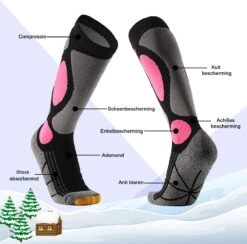MyStand Skisokken - Wintersportsokken - Skiën Snowboarden Of Wandelen - Wintersokken Compressie - Dames/Heren - One Size - Maat 37 Tot 47 - Roze