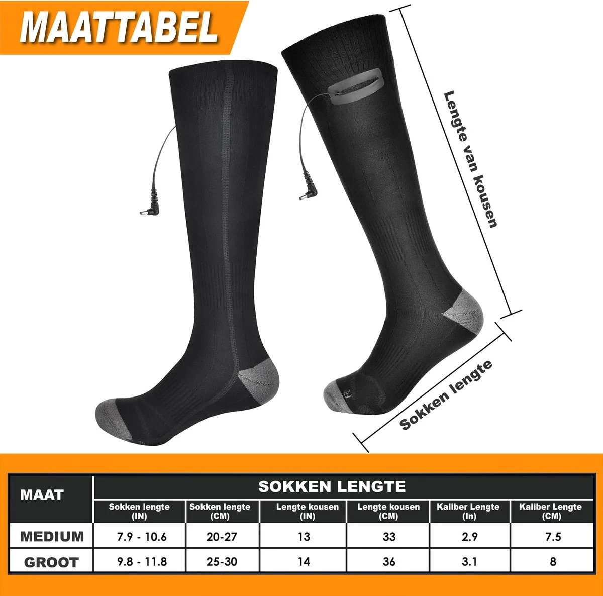 De sokken worden van stroom voorzien door de draagbare 4000 mAh powerbank en is eenvoudig op te laden via de meegeleverde USB-oplaadkabel. Dankzij het hoge accuvermogen kan de sokken tot 6 uur worden gebruikt op het laagste warmteniveau (30%), 4 uur op middelhoog warmteniveau (60%) en 2 uur op het hoogste niveau (100%).
