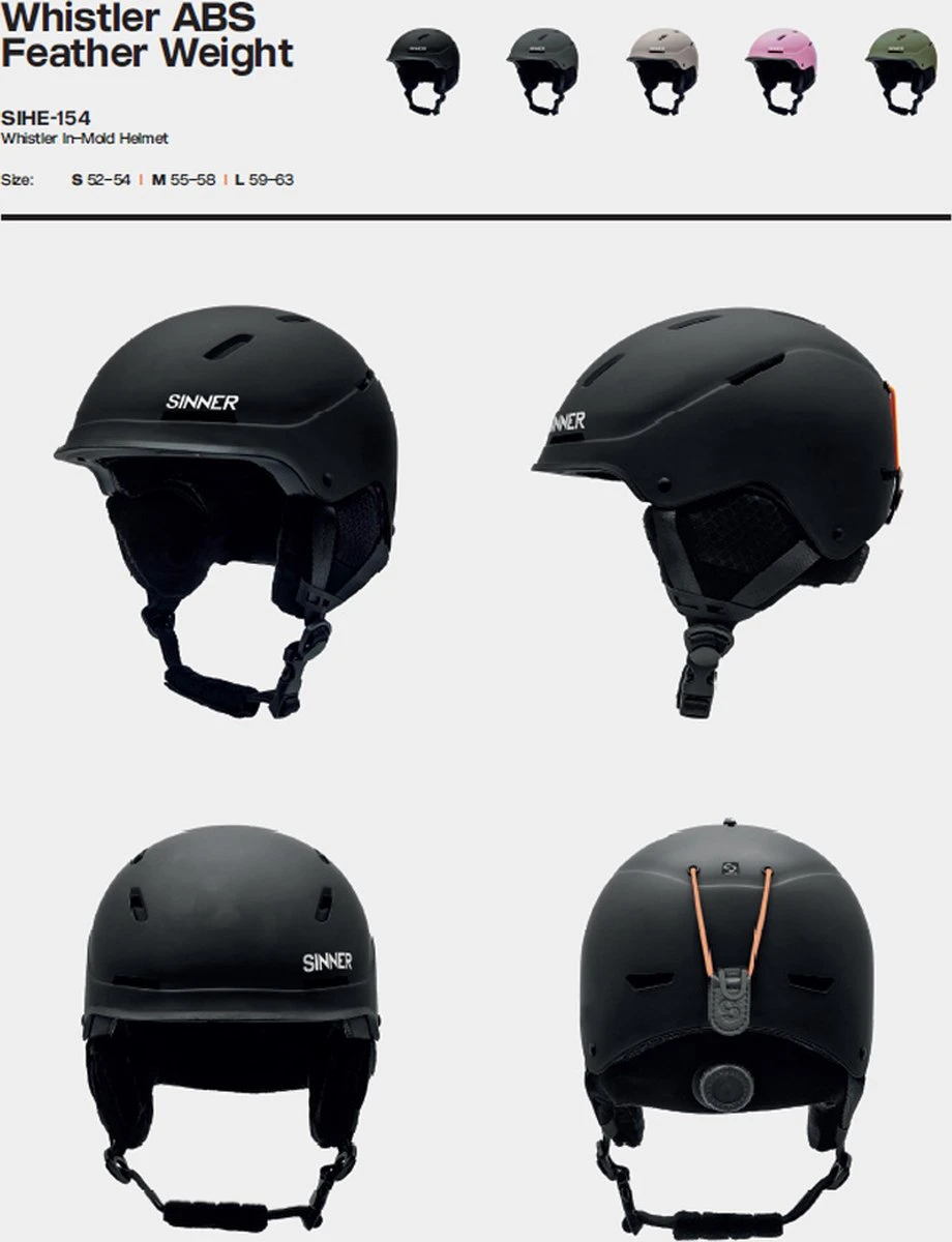 De SINNER Whistler skihelm is erg stijlvol dankzij het strakke design. Daarnaast is deze skihelm ook zeer veilig, functioneel en comfortabel. De helm is uitgevoerd met zachte uitneembare fleecevoering, regelbare ventilatie, skibrilhouder, snelsluiting en een maataanpassing systeem.